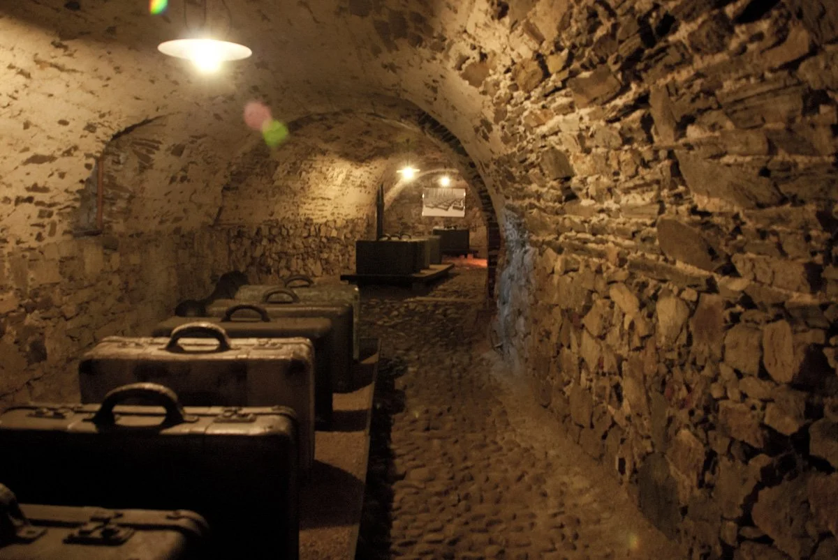 While wandering through the Cesky Krumlov castle and over the castle bridge (repaired in 1990 or sometime close with money from Taiwan... go figure), I saw posters advertising an exhibition of the local artist Milan Posselt. From what I’ve gathered he was an artist in communist Czecheslovakia and since the Velvet Uprising, has made quite a name for himself (at least in the ((now)) Czech Republic). The work was modern and somewhat surrealist. Bathroom sinks cast in the shape of horses mouths, out of scale/ proportion fingers and legs as benches, cast door handles representing oversized fingers... it was cool stuff. But what was really cool, and so very appropriate, was the gallery where he chose to show, the caverns underneath the castle. It was so fitting, these heavy and brooding pieces living in these heavy spaces. It was the complete opposite of what we know as a successful, modern gallery... it was not light, it was not airy and it was not clean, but it was so appropriate to the work it housed.