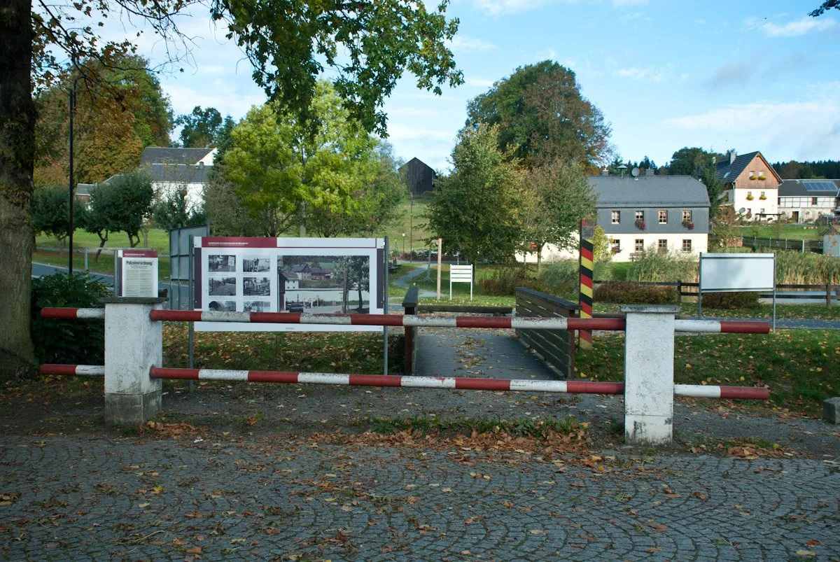 In the late 1940’s, the Tannbach stream was established as this border between Soviet controlled East Germany and U.S. Controlled West Germany, as it was the border between the German states of Thuringian and Bavaria. Unfortunately for the residents of Modlareuth, the village strattled this border. Early on the stream was known as ‘The Green Border’, and people could come and go as they pleased. Then in 1952 a wooden fence was erected as a physical barrier between the two halves of the village. As the Soviets implemented more communist authority, villagers were getting antsy. Soon after, the East German police came in the middle of the night to move the residents inland while a taller steel fence was erected (an iron curtain). A few of the villagers recognized what was in store and made a run for it, jumping from tall windows and dashing for the border while the police waited outside for them... leaving all their belongings behind. Finally, in 1966, 700 meters of concrete walls were erected which would divide the village for the next twenty-three years. The measures installed to keep people from defecting (or to keep West Germans from trying to get into East Germany, as the East Germans were informed) were mind numbing. By the 1980's the border consisted of, from the East German side: traffic barricades; automobile ditches; a sand raked identification strip (to see if any foot traffic had passed); the steel fence with electrified barbed wire and sensors; interstitial zone with dogs on cables; and finally the concrete wall. Lots of time and effort to keep people in.