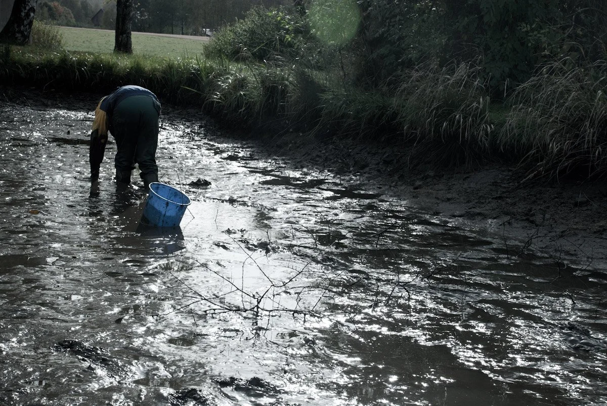 It was an early start the next morning, for everyone but the slacker visitor who slept in until 9:00. The Rhein’s and their neighbors were draining the pond to clean it out before the winter, and I was more than happy to help (although I feel I was more in the way, so sometimes it is better to sit back, drink a beer, and let those in the know go at it). The work entailed draining the existing water out to the adjacent field; catching all of the Karp, Whitefish, Goldfish and Koi; store the fish in bins and take an inventory; clean out all of the mussels; fill the pond and put the fish back. While I drained more beer than pond, I can now say that I have caught a fish with my bare hands. It was an unfair fight with the fish trying to elude me through one inch of water, but I don’t care, that is what I am going to tell people. After a nap I joined Henry taking Prince, their big old black bear of a dog, for a walk through the woods. Henry found Prince deep in the woods about ten years ago while out mountain biking and brought him home. We strolled through the woods to the spring of the Salle River and then back to the car. We took it pretty easy that night and then next morning (Sunday) went for an early morning road trip, but I’ve already posted about that during the trip out to Modlareuth.