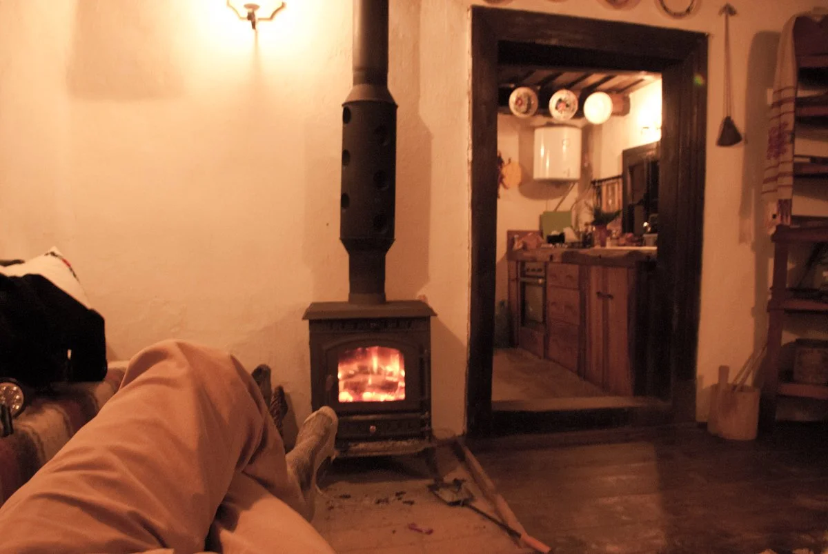 I found myself in a nice routine for the six days I was there... I would wake up around 8:00 or 9:00. Start a fire. Lay on the couch reading a book or listening to music. Finally around 2:00 I would leave the house to go for a walk in the village or the surrounding hills. I’d come back at 4:30 when it started getting dark. Start a new fire and lay on the couch, eventually falling asleep. Maria would come over before dinner to check that I had everything I needed, then we walk across the lane to have dinner at Lenuza’s house. Iuon would load me up on horinca, I would go home and fall sleep on the couch again, waking up in the middle of the night as the fire began to die, heading up the stairs to bed.