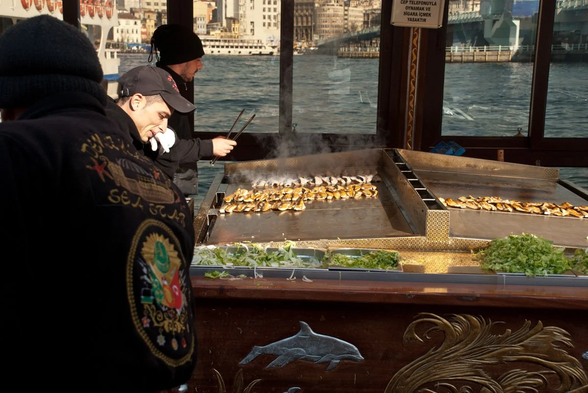 Istanbul is essentially divided into three parts (in the main touristed areas at least), two of which are European, and one of which is in Asia. There are the north and south European parts, the south being the Golden Horn described above, then across a river is the northern European side, referred to as modern Istanbul (modern being a relative term). Across the Bosphorus Straight is the Asian, or Anatolian side. The Bosphorus being the waterway connecting the Black Sea to the Aegean Sea in the Mediterranean. After walking through then grounds of the ancient sites I wound my way down the tight cobbled streets, past stick framed wooden houses on the hill above the sea. I walked clear around the Golden Horn, passing by the feral cats and men meeting for walks along the waterfront. I looked out to the Marmara sea and the Princes Island hazy in the distance, the Bosphorus Straight and Asia across the way and finally to Galata and modern Istanbul. I reached the Galata Bridge and stopped for a fresh fish sandwich, and noticed that a tour boat was heading up the Boshporous in a few minutes... why not?