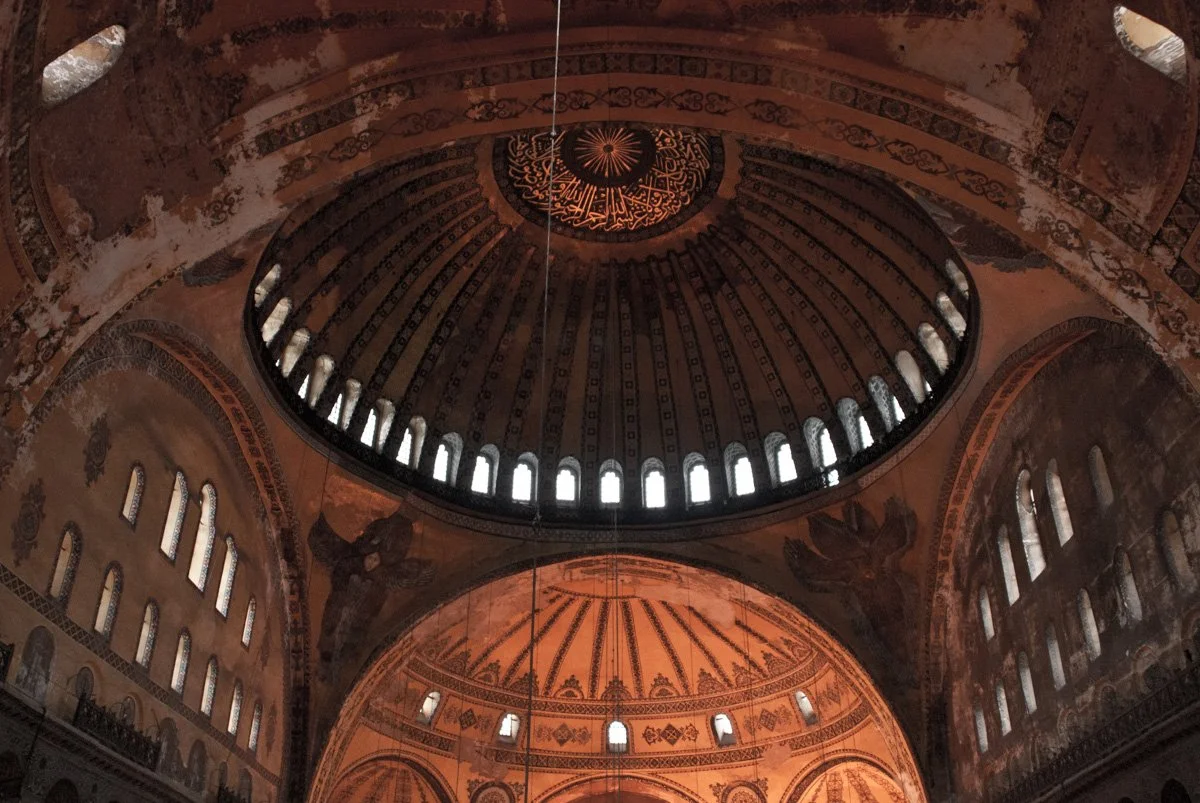 I emerged from the underground water system and walked across the street to finally visit the Hagia Sophia. It was probably about 2:00 at this point, leaving me a solid 2.5 hours in the grand mosque. I am not really sure what to say about it... it was just so grand, the space inside. I’d been reading about it and studying about it for so long, that perhaps I overhyped it for myself. Rather than being an inquisitive tourist, I found myself walking around as a museum weary tourist. The display of information was really interesting though. Emperor Justinian had the Christian Temple built in 537... 537! That is crazy! In 1453 the Ottoman Mehmet the Conquerer converted Hagia Sophia into a mosque, as it remained until Ataturk made it a museum in 1935. So all of the placards displaying information were either white, to present the Christian information, or green to present the Muslim information... Anyway, I returned outside and busied myself studying the structural system of the mosque/ temple, which was really interesting to me. Over time, large masonry buttresses were added in all direction to help stabilize the massive structure. And upon seeing the less than erect nature of the interior columns, the added structure was absolutely necessary!